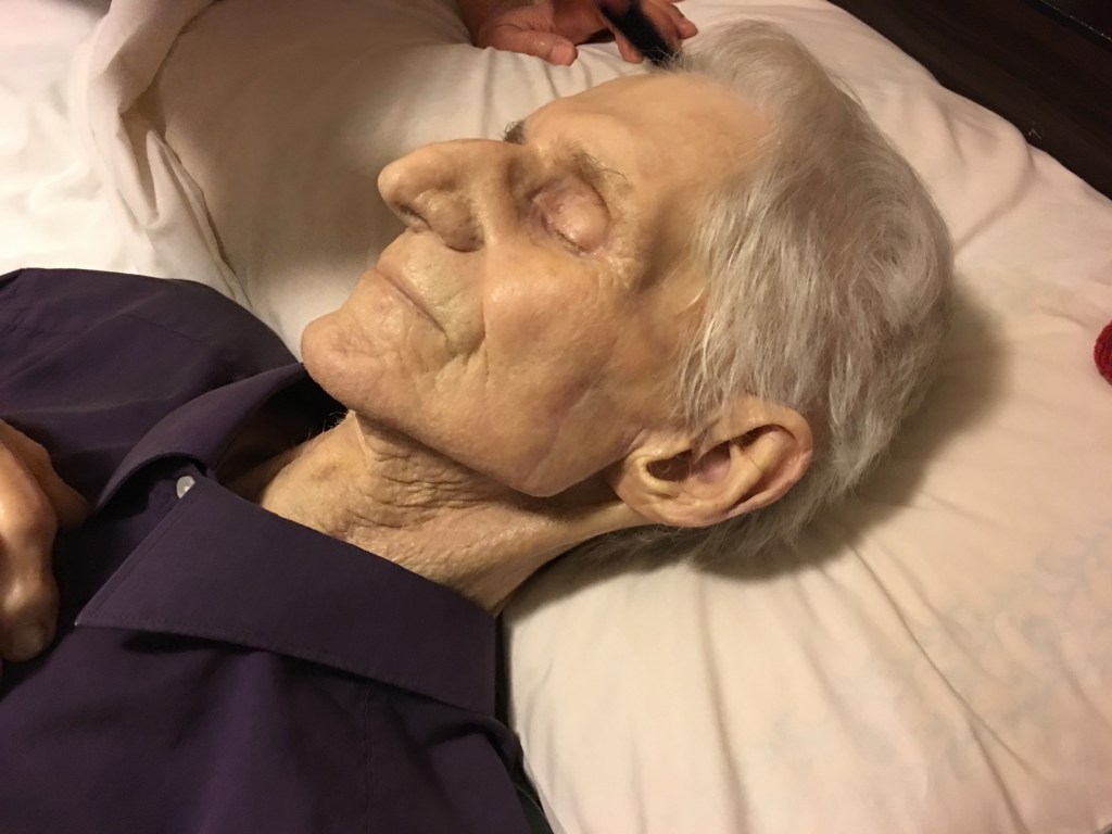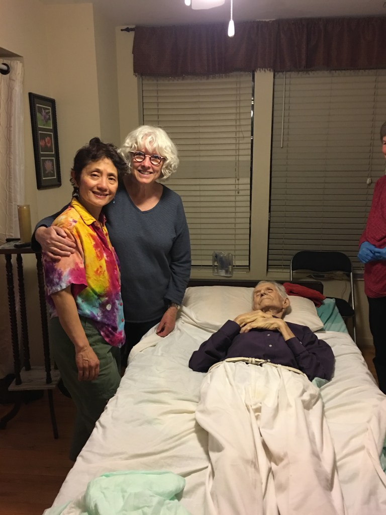 Another death we attended was that of Wayne. He was in his 90’s and said to have widespread cancer, though he didn’t seem to have pain in his last days. His wife, a retired hospice MD knew of our work and called us in. In the end, at least half-dozen people were constantly at his side. It appeared he was spirited out of this world at the perfect moment.
